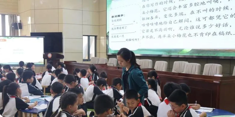 徐嘉瑶老师执教四年级《猫》,运用AI 动态课件辅助教学,帮助学生快速梳理文本脉络。课堂以 “动物观察室完善档案” 为核心情境,将学习与实践任务紧密结合,学生以 “档案管理员” 身份走进文本、探究写法,课堂参与热情高涨。