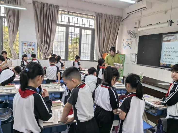 杨小玲老师执教三年级《认识周长》,课堂开篇用AI设计蚂蚁爬树叶赛跑的情境,在故事中明白:绕树叶一圈的长度就是周长。大家动手用绳子围一围、量一量,亲自测量不同图形的周长。在游戏与操作中,轻松理解周长概念,感受数学就在身边。