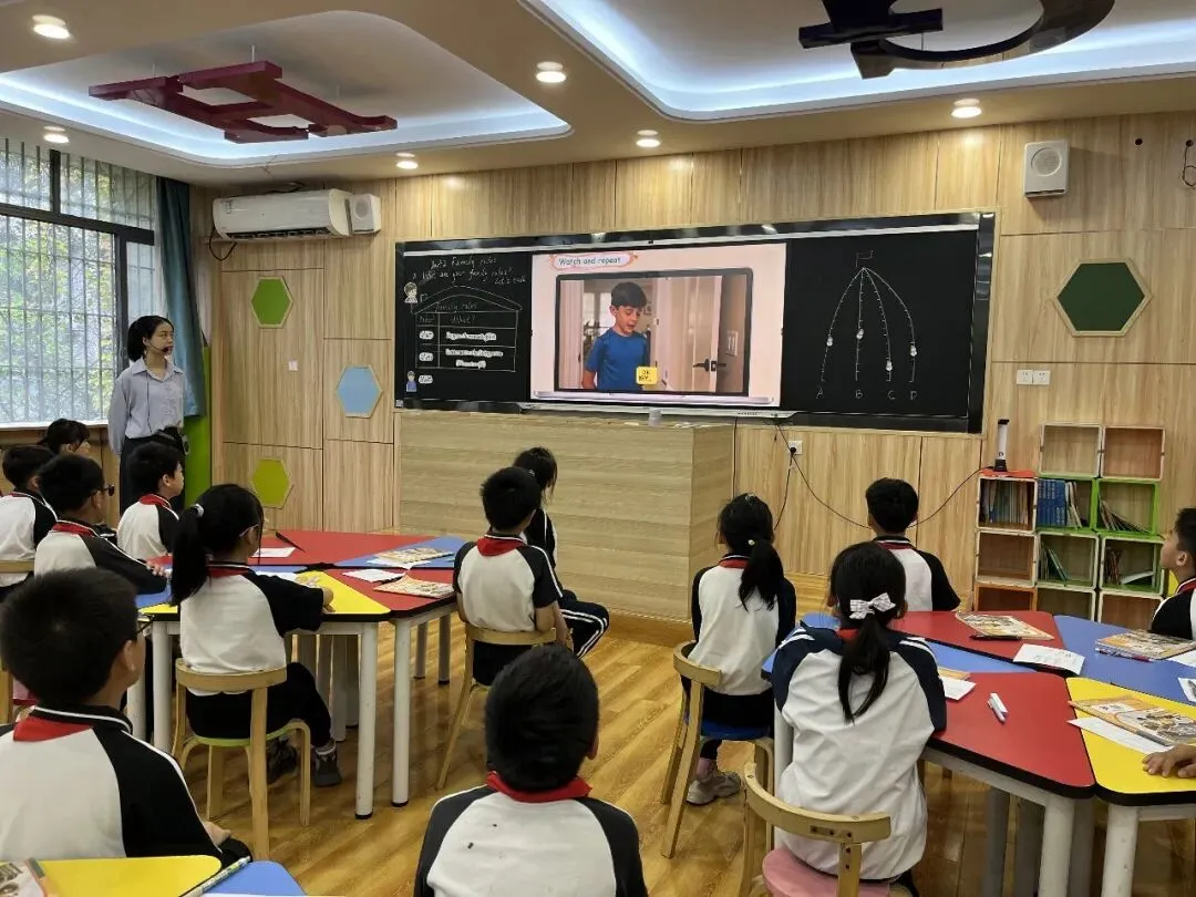 何韵老师执教《Family rules》对话课,用AI 情境动画激活课堂氛围,以分层任务引导小组合作探究家庭规则,在互动交流中夯实语言基础,渗透德育教育。