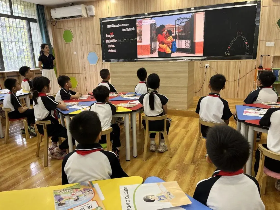 谭兆君老师执教《My words and actions》,借助数智素材呈现中西方爱的不同表达方式,通过小组操练、趣味配音秀等活动,实现语言学习与情感教育深度融合,课堂氛围轻松愉悦。