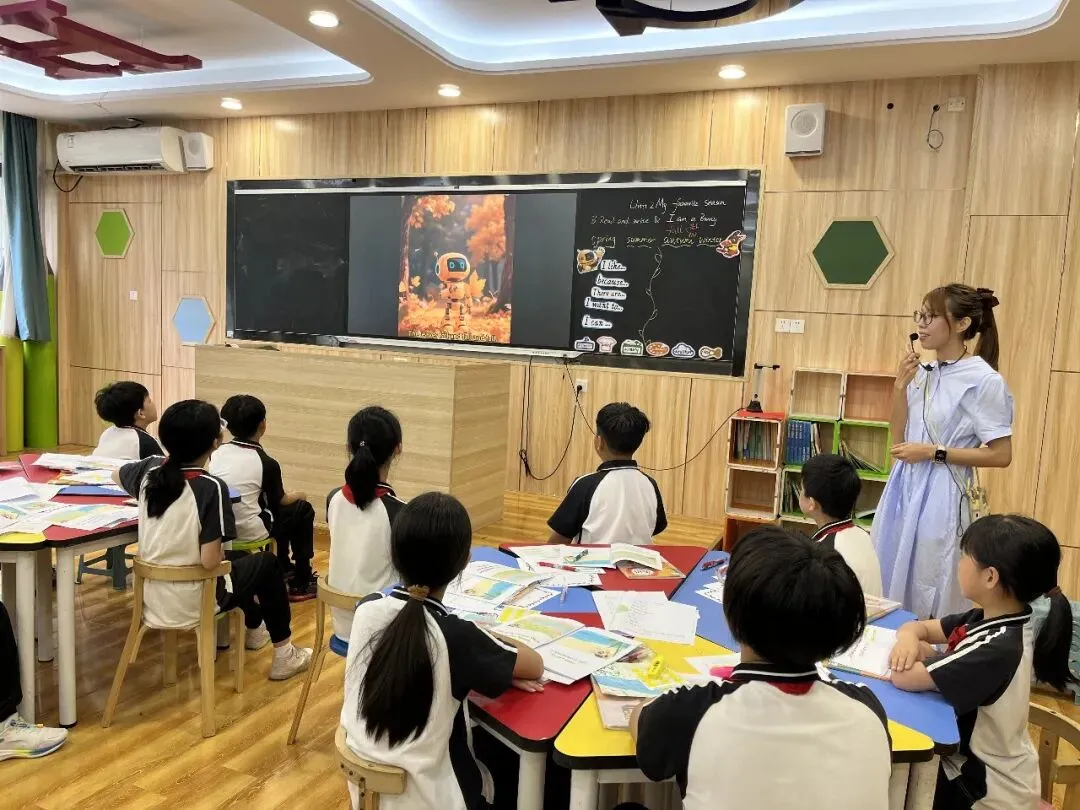 张晓岚老师执教《My favourite season》读写课,以AI 视频提取关键信息,用思维导图梳理思路,以小组创作深化语言输出,有效提升学生读写能力与思维品质。
