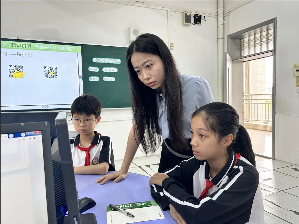 侯伟漫老师执教四年级《二维码伴我生活》,以AI 数字人创设 “科创节” 情境,快速吸引学生注意力。通过 “解码大行动”“探秘二维码”“安全意识大考验” 等递进式活动,引导学生小组合作扫码体验、观察特征、辨别风险,将抽象原理直观化。