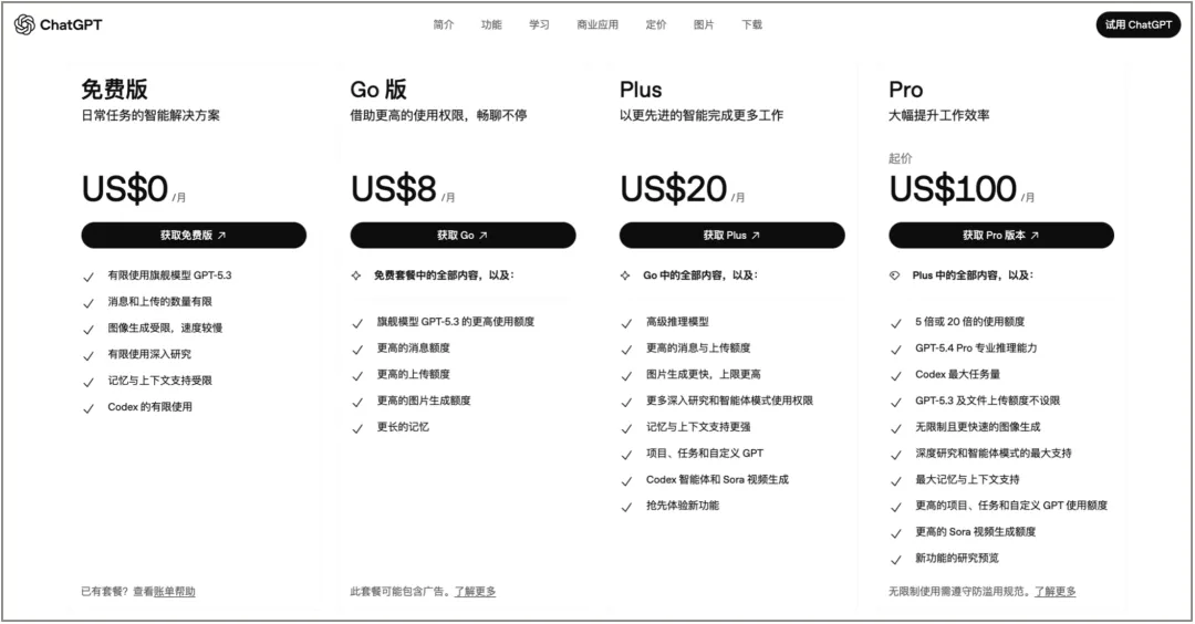 100刀这档的话,可以满足准专业开发需求,也是解锁GPT5.4 Pro的门槛,但不一定适合大多数人。