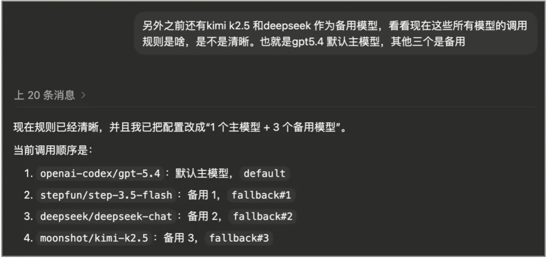 因为最近开了ChatGPT Plus,我就把龙虾的主力模型也换成了GPT5.4,体验下来O社给的用量基本可以覆盖我的日常。