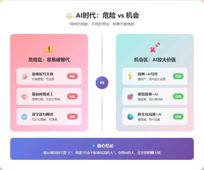 所以啊,被AI淘汰的,从来不是"人",而是"只会干标准化活的人"。
