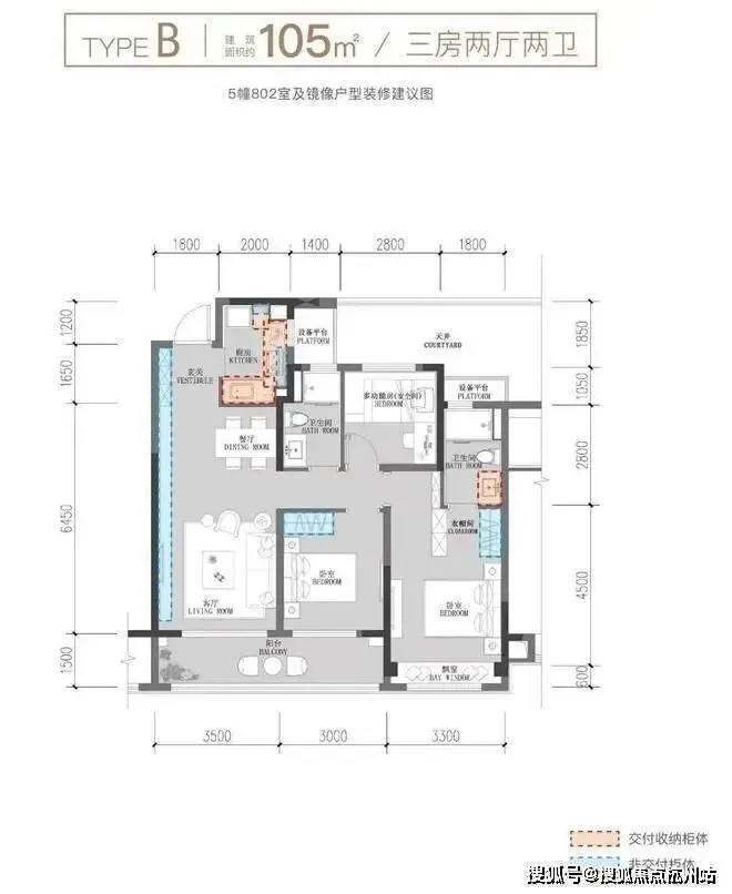 占地面积:33491㎡,共建造7幢25-26F高层建筑,总户数611户,面积105-128-142方都有,建面约105方,该户型为项目的三房起步户型,三房两厅两卫的设计。