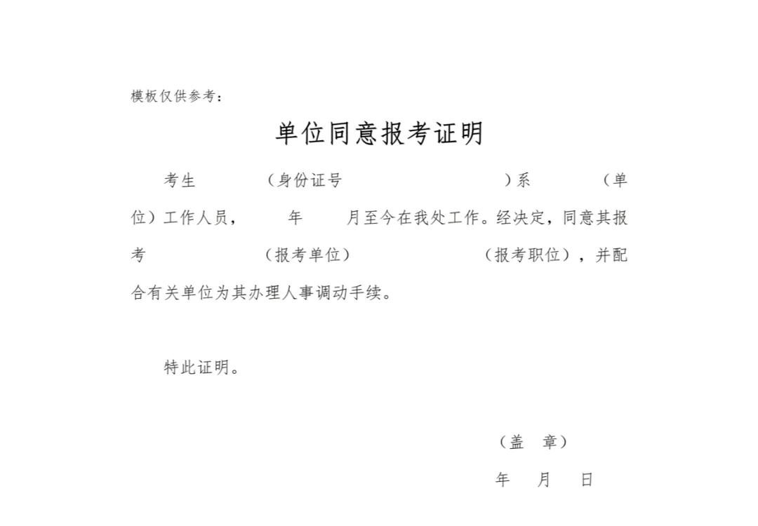 ◾国有事业单位工作人员:需提供单位同意报名的书面证明材料,按干部管理权限由所在单位或主管部门出具。