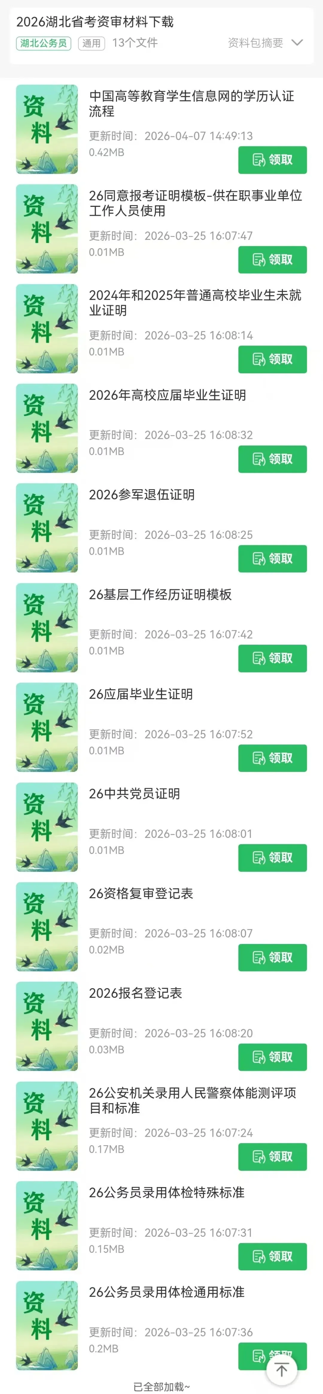 ◾大学生志愿服务西部计划:共青团中央统一制作的服务证+大学生志愿服务西部计划鉴定表原件及复印件。点击直接下载:26 湖北省考资格资审材料模板