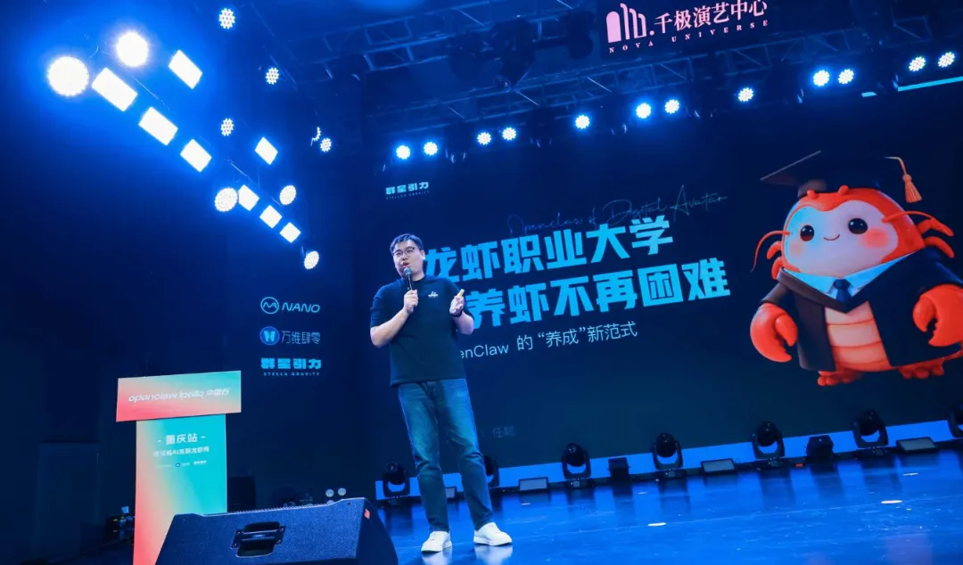 他提到,截至目前 OpenClaw 中国行已举办 17 场行业活动,覆盖超 4000 名参与者,其中 500 + 人已正式开启 “养虾” 实践。本次重庆站不仅是一场分享会,更是成渝 AI 互联的起点,旨在打通成都与重庆的技术、人才、资源壁垒,共建西南 AI 智能体生态。同时,他也正式向全场宣告:让 AI 真正落地、让人人用好龙虾,是我们不变的初心。