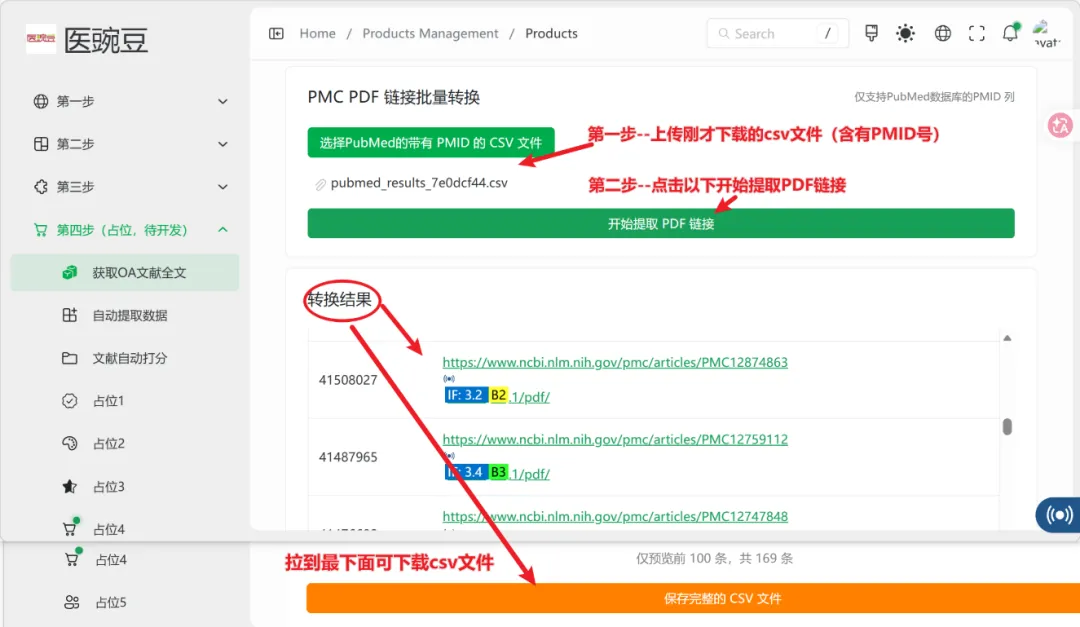 2.全自动数据提取: AI 自动解析并提取 OA 文献核心数据。
