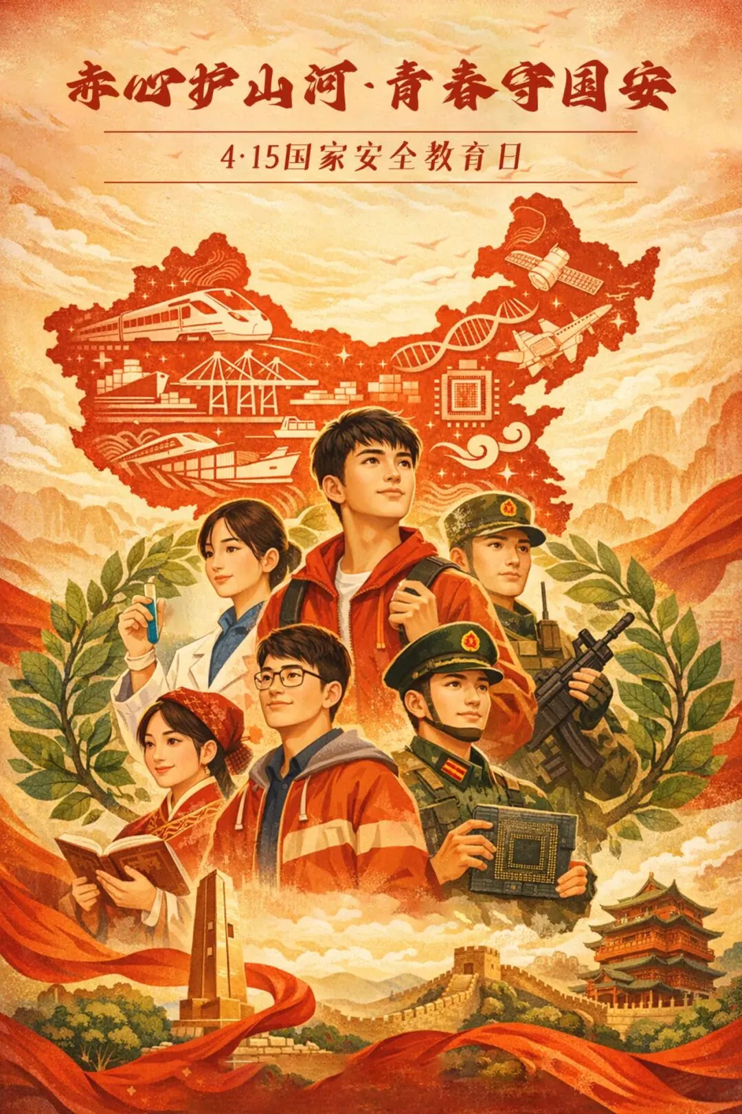国安在肩,山河在前,以我青春,护我中华