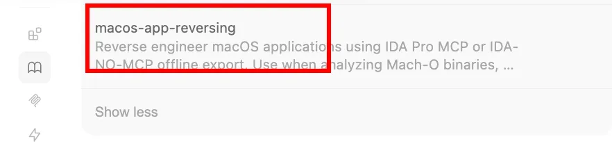 拿到导出的信息后,我们请出今天的主角——Cursor。为了让 Cursor 具备逆向分析的专有知识,我们需要加载一份特殊的 Skill(技能包)。