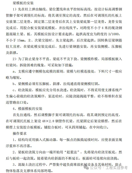 2025年模板工程专项施工方案word50页(会员资料)加入2026《工程实战参考》会员2025《工程实战参考》会员资料加入2026《市政路桥实战参考》会员2025《市政路桥实战参考》会员资料来源:网络版权归原作者所有,侵删文末有下载方法:加入2026年度《工程实战参考》会员。。。。。。篇幅过长,共50页,以下略加入2026《工程实战参考》会员2025《工程实战参考》会员资料2025年《工程实战参考》会员资料01. 施工方案持续更新中,点击题目阅读209项目现场试验、检验专项方案(模板)word80页208装配式预制构件吊装专项施工方案word90页207拉组合式悬挑脚手架专项方案(已专家论证)word200页附CAD图206塔式起重机安装工程专项施工方案2025年word70页205高大模板支撑体系(盘扣式)施工方案word210页204木模板工程施工方案word290页2032025年外脚手架搭设专项施工方案word70页202花篮拉杆式悬挑脚手架施工方案word165页附专家论证意见+cad图201悬挑式卸料平台施工方案word85页200临边防护施工方案word199深基坑工程专项施工方案(专家论证意见)2023年word附cad图198高大模板施工方案(专家论证)word485页附cad197高大模板(盘扣式)施工方案专家论证会汇报材料ppt35页196幕墙施工方案2024年word55页195原有建筑拆除施工方案2024年word194扬尘治理专项施工方案2023年word30页193高处作业吊篮专项施工方案2025年word85页192深基坑土方开挖、降水、支护专项施工方案(已专家论证)2024年word55页191施工升降机安装专项施工方案2024年word65页190地下室防水专项施工方案word40页189ALC墙板专项方案word55页188夹层盘扣式钢管支架专项施工方案2025年word100页187某项目安全生产实施计划书2025年word110页186盘扣式悬挑式脚手架(已专家论证)施工方案2023年word220页185砌体工程施工方案word65页184预应力索网施工方案word90页183临时用电(JGJT46-2024)施工方案2025年word90页182灌注桩专项施工方案(模板)word50页181群塔作业安全专项施工方案word22页+汇报ppt30页180钢筋桁架楼承板施工方案2024年word85页附cad图179塔吊安装专项施工方案word85页178房建类施工方案编制 、复 核要点指南word120页177施工现场生产安全事故应急预案2024年word115页176花篮拉杆式悬挑脚手架专项施工方案word110页175高支撑结构施工及监测方案word530页174冬期施工方案2025年word45页1732025年模板工程专项施工方案word50页172钢结构安装工程专项施工方案2025年word155页171幕墙施工技术方案2024年word165页170高大支模安全专项施工方案(论证修改版)2024年word490页169名企临电施工方案2021word45页附CAD图168钢结构工程桁架安全专项施工方案2022年word240页167通风空调工程施工方案三维图示2020word130页166临时用水施工方案2025年word30页165幕墙施工方案(专家论证修改后)2021年word390页164高支模(盘扣架)专家论证方案2024年word105页附cad图+计算书163施工安全技术方案和安全技术交底专项培训ppt155页162悬挑式卸料平台施工方案word85页161钢筋工程马登筋专项施工方案2024年word1602025年施工方案编制要点ppt35页159大面积耐磨地坪楼面工程专项施工方案word40页1582024版医院综合楼项目质量管理计划书word110页1572025年临时用电专项施工方案及技术交底word1562024盘扣式钢管高支模施工方案word160页附cad图155悬挑三角架支模平台安全专项施工方案2023年word70页154绿色施工专项施工方案2024年word60页153装配式工程施工方案word95页152铝合金门窗施工方案2022年word45页151安全文明施工专项方案2022word110页150砌体结构施工方案word80页149肥槽回填土施工方案word1482025年落地式盘扣卸料平台专项施工方案word70页1472025年塔式起重机安装工程专项施工方案word55页146临电施工方案2021word45页附CAD图145超危大钢结构工程安全专项施工方案(已专家论证)2023年510页144浅圆仓滑模安全专项施工方案2023年word160页143砖胎模砌筑施工方案2024年word60页142超高超限模板(盘扣式)安全专项施工方案word340页141屋面花架梁模板支撑架工程2021word140页140铝合金模板工程设计与施工专项施工方案word85页1392025年《危大工程专项施工方案严重缺陷清单专题培训》ppt120页138建筑垃圾处置以及减量化方案word32页137卸料平台施工方案2024年word45页136中建分部分项检验批划分方案、资料目录策划编制要点ppt75页135高大模板安全专项施工方案(盘扣架论证版)2024年word180页134临时用电施工方案word65页1332025年土方开挖、降水及基坑支护专项方案(已通过专家论证)word100页132型钢混凝土结构施工方案2021word70页131悬挑式水平防护棚安全专项施工方案word130地下车库临时用电专项施工方案2025年word55页1292025年高大模板(盘扣架)工程安全专项施工方案word118页128软基淤泥处理方案2022年word35页127砖胎膜施工方案word126检验批划分方案word125坑中坑支护及二次土方开挖 专项施工方案word90页124车库顶板堆载及施工道路加固方案word+计算书+cad123铝模施工方案2024年word125页122智慧工地实施方案2022word版55页1212025年花篮式短肢悬挑专项施工方案(已专家论证)word185页120创优策划方案word175页119装饰装修施工方案word45页1182025年土方开挖、基坑支护、降水专项施工方案(已专家论证)word95页1172025年临时用电(符合JGJ46-2024)专项施工方案word100页1162025年群塔防碰撞专项施工方案word55页1152025年高大模板(盘扣架已专家论证)专项施工方案word135页1142025年吊篮专项施工方案(已专家论证)word85页1132025年有限空间作