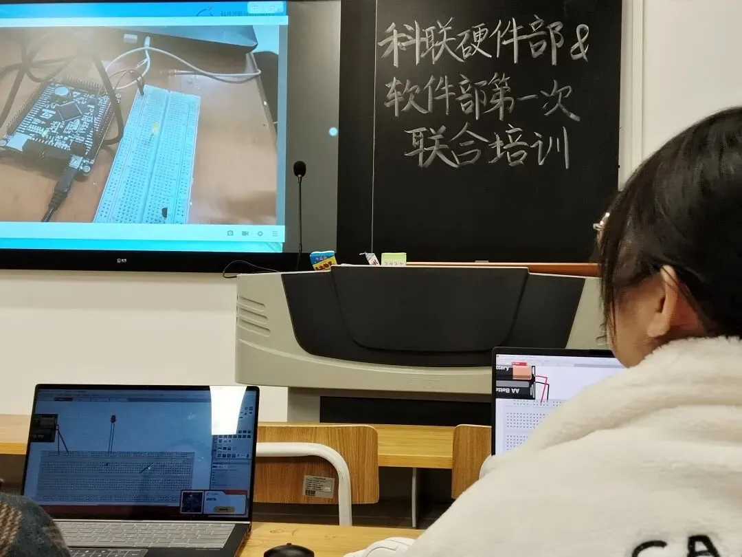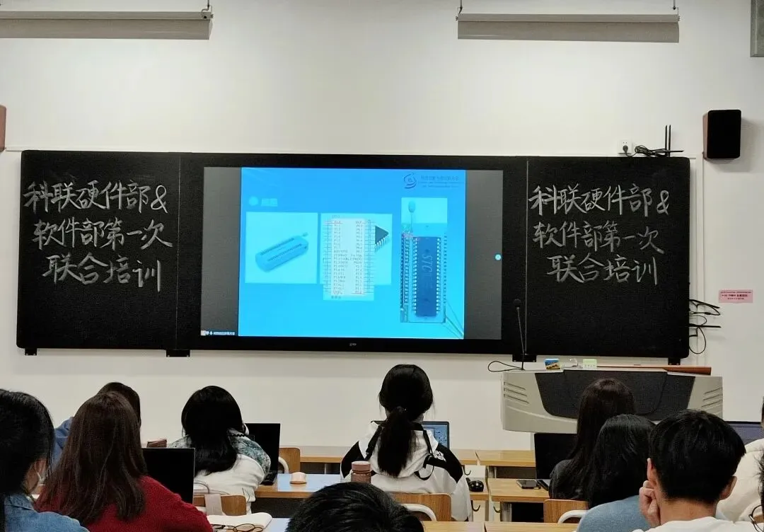 2022年11月6日,科技创新与创业联合会(以下简称科联)硬件部和软件部第一次联合培训在河源校区唯实楼202室顺利开展。此次培训的主讲人为硬件部部长柯思林,培训对象为22级科联全体预备干事,采取线上教学的方式。