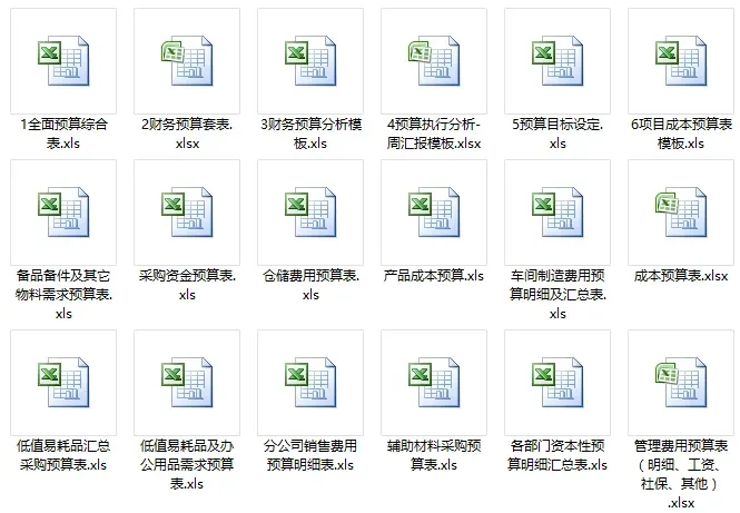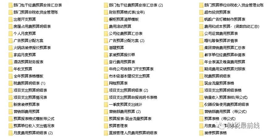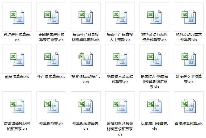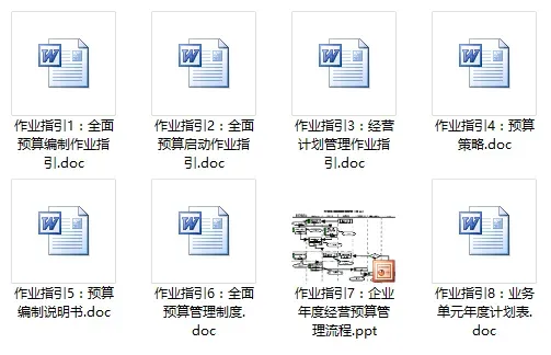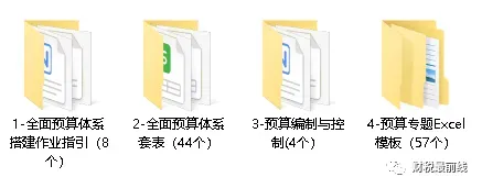 本套资料包含全面预算管理全套表格(44个)、全面预算体系搭建作业指引(8个)、 预算编制与控制(4个)、预算专题Excel模板(57个),全是干货,预览如下: