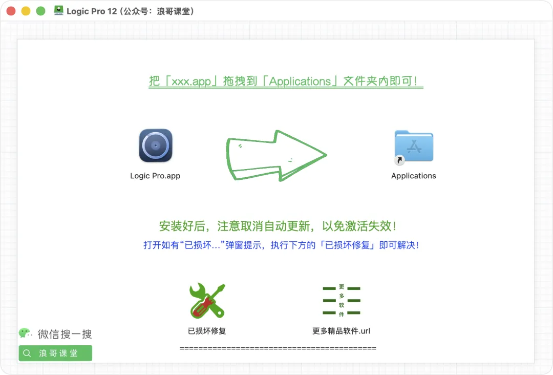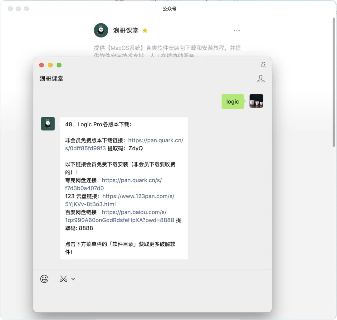 在「浪哥课堂」公众号后台回复:Logic 即可获取网盘下载链接!