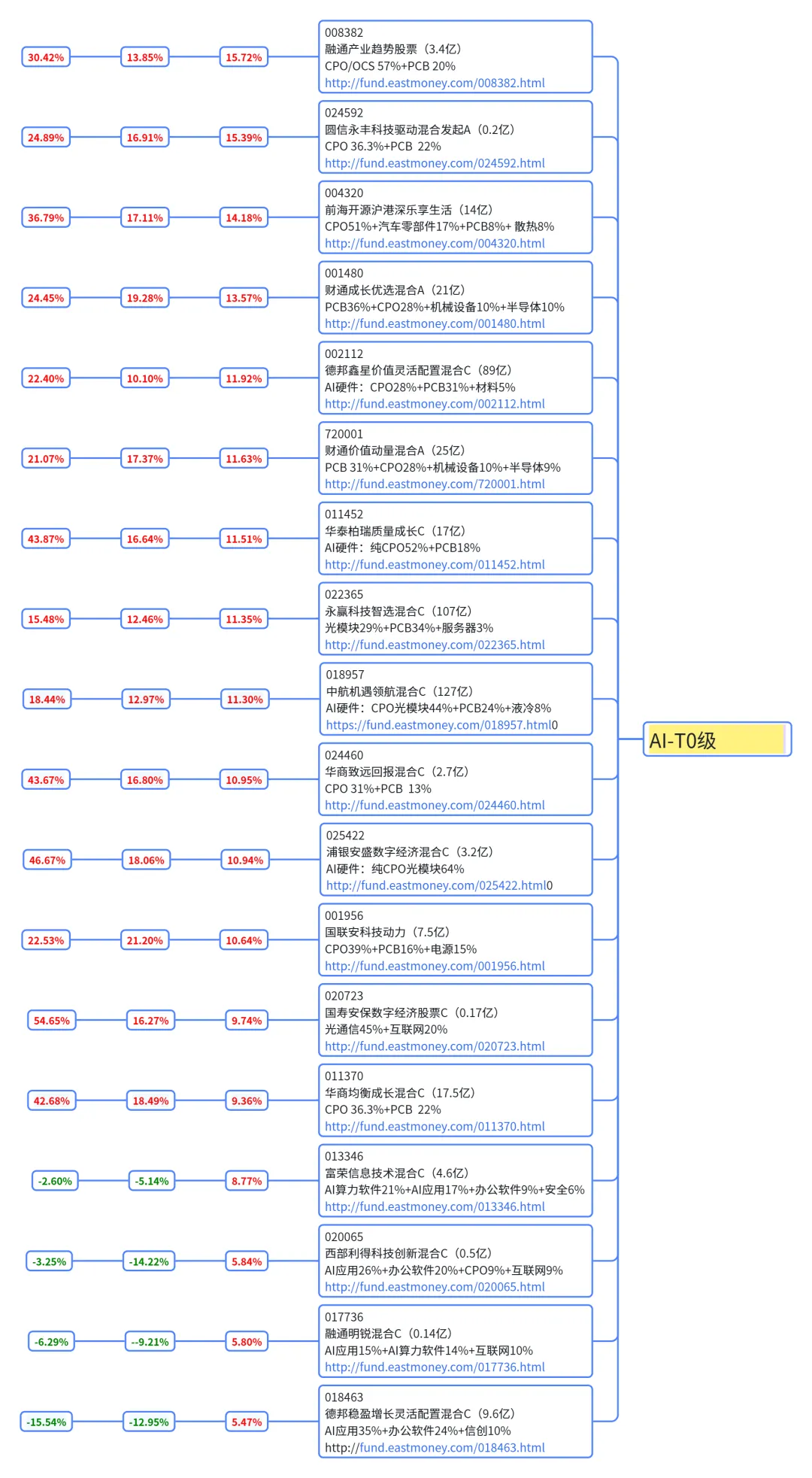 AI硬件最优基金为纯CPO基金 融通产业趋势股票C 近一周业绩 +15.72%;