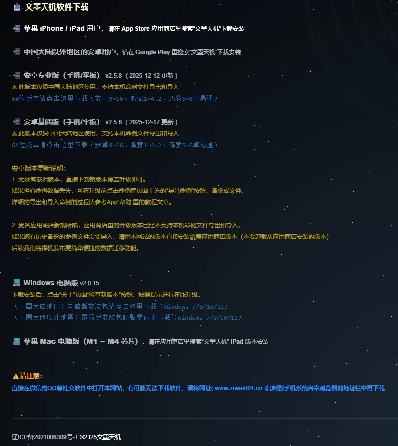 🌱安卓手机:手机应用商店中没有(很多安卓手机搜“文墨天机”出来的并不是文墨天机),建议直接在官方网页中下载,