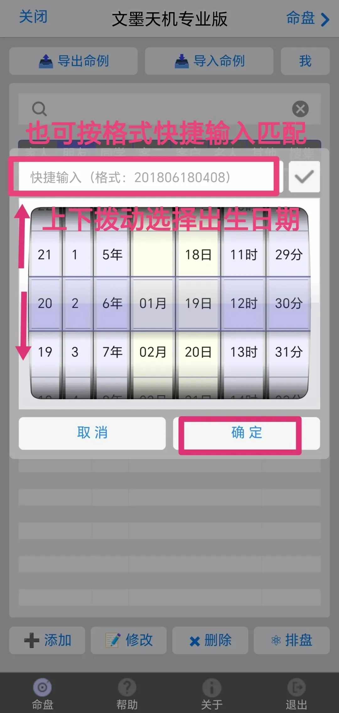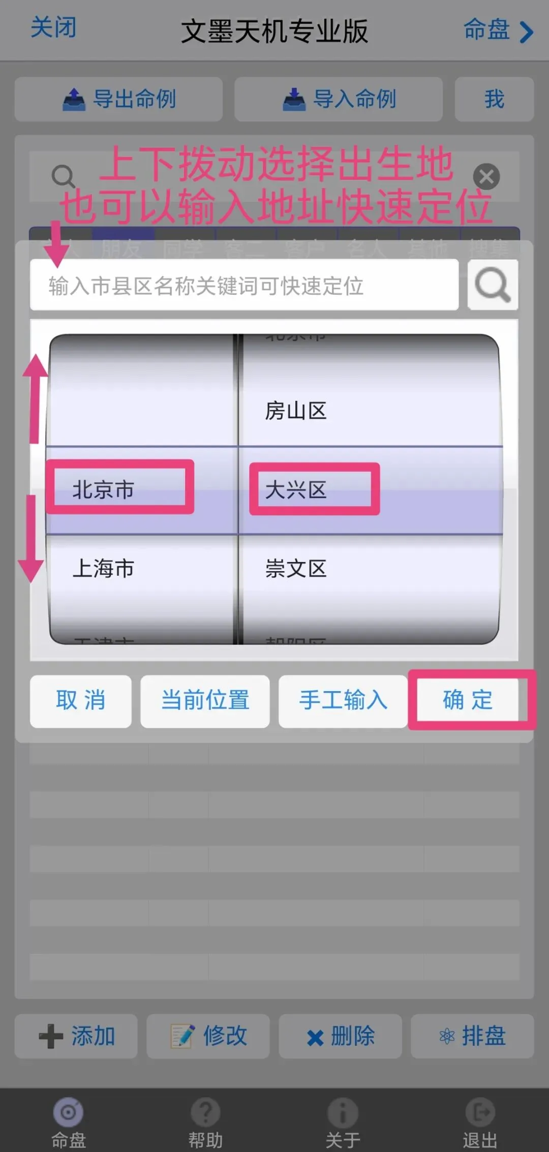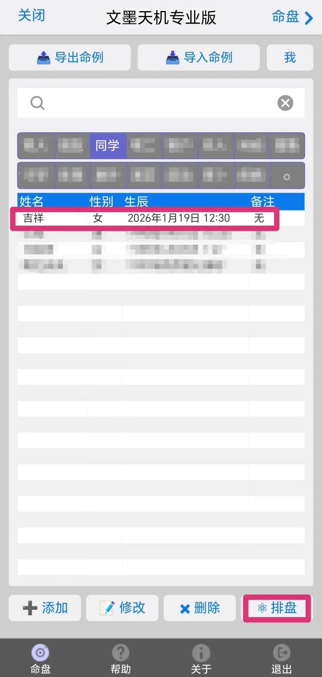 4.依次输入信息,排盘。
