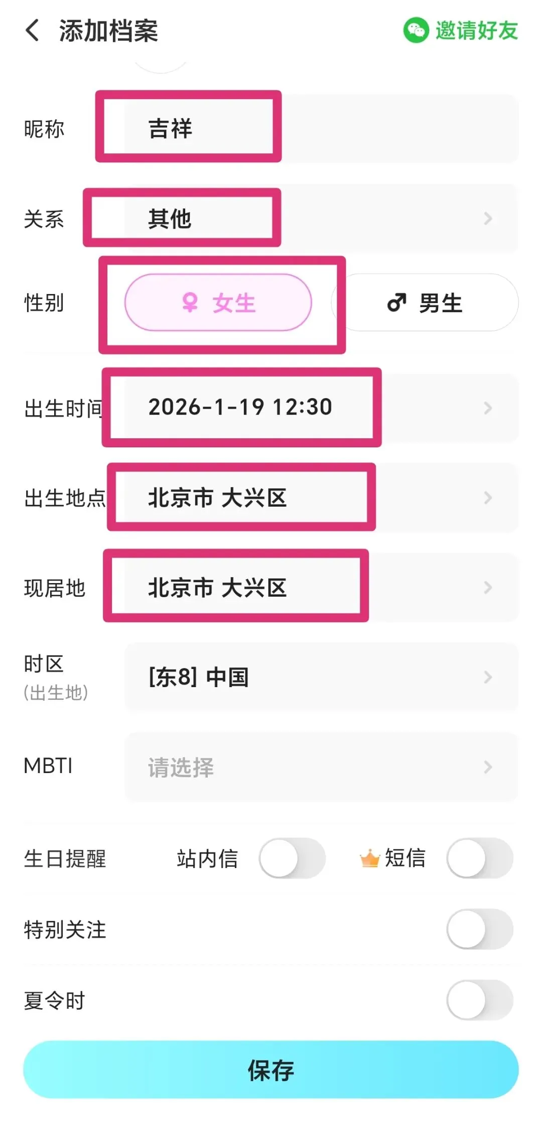 注意:如果出生时间在日光节约时(夏令时)期间,需要手动减去一小时再输入。