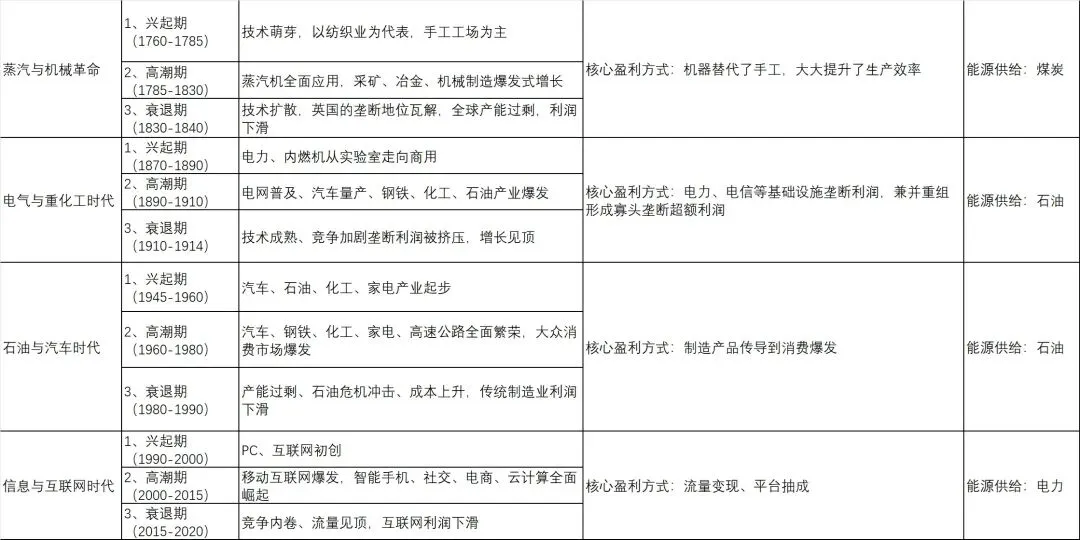 AI如何收回巨额投资成本?AI的兴起和发展已被世界广泛认为是新一代的产业革命,从蒸汽时代到如今的智能时代贯穿了人类将生产力发展曲线由平缓延伸到75度角以上斜率爆发的缩影。机器代替了手工劳作、汽车埋葬了马车、电话淘汰了信件、互联网颠覆了社交方式,人类的生活方式无时无刻都在被技术革命改变着,反过来因为人类追求更便捷、更舒适、更高效又不断激发着新技术的出现。读史使人明智,回望历次革命发展的规律应该会给当下提供更多的思路方向,当今世界诸多头部企业的AI资本开支投入巨大,更不断超预期的增加投资,如果迟迟无法兑现盈利,他们就不怕花钱打水漂吗?每一次的革命都有其兴起期、高潮期、衰退期及核心的盈利方式,我们梳理一下过往:按图索骥,当下的AI产业革命已经兴起,按照规律在发展初期的基础设施建设,卖铲子的黄伟达已经赚得盆满钵满,美国和中国是走在AI时代最前端的,既是事物未来也必定走向高潮和衰退期,我们可以推测一下AI时代核心的盈利方式会是什么?当下资本的巨额支出还迟迟看不到确定性的回收入口,算力算法消耗的token这个应该是基础的回报方式贯穿始终。大国的AI竞争志在高远,华尔街的宏大AI叙事后期也需要有着陆落地产生指数倍利润的承载场,智能驾驶、机器人、AI应用、万物互联互动应该都是潜在的爆发点,基于中美不同的法律法规情况,或许会选择不同的承载场,中国的场景要比美国丰富得多,AI应用或许被更多人看好,起初爆款的出现会逼着法律法规的完善,完善的法律法规会为后续的新爆款保驾护航从而促进高潮期的出现。能源的供给毫无疑问还是电,因为需求太大,供给来源会多样化,国家主推的绿电必定会是贯穿AI时代的投资必选,风光核水储都是长期价值。两次世界大战,分割了电气时代与石油时代,将繁荣带向了北美洲,未来的地缘变化会给后世带来如何影响?一切的发展都离不开人的因素,每次革命都围绕着人的需求展开,AI时代也不会脱离人,当下的思考在什么情况下,我们愿意为AI付费?会是人的快乐需求吗?