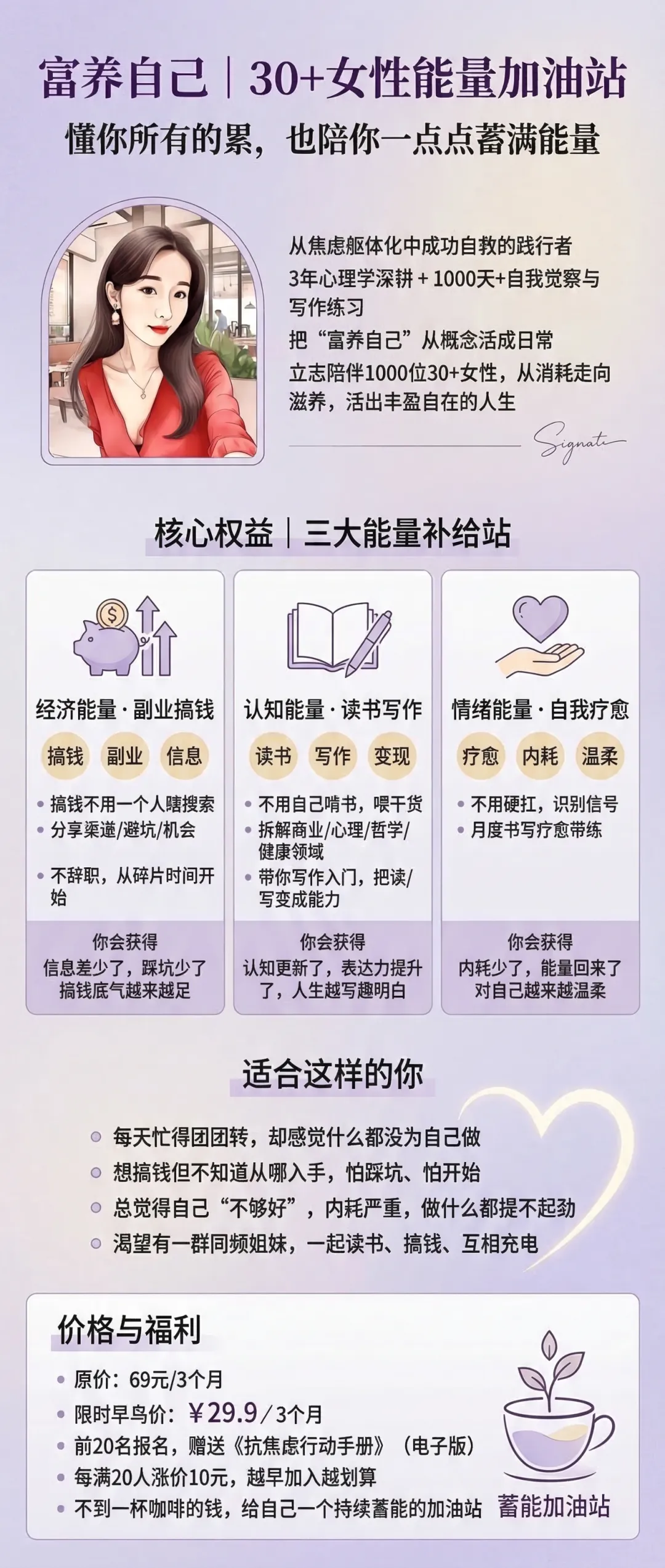 立志陪伴1000位30+女性,从消耗走向滋养,活出丰盈自在的人生。