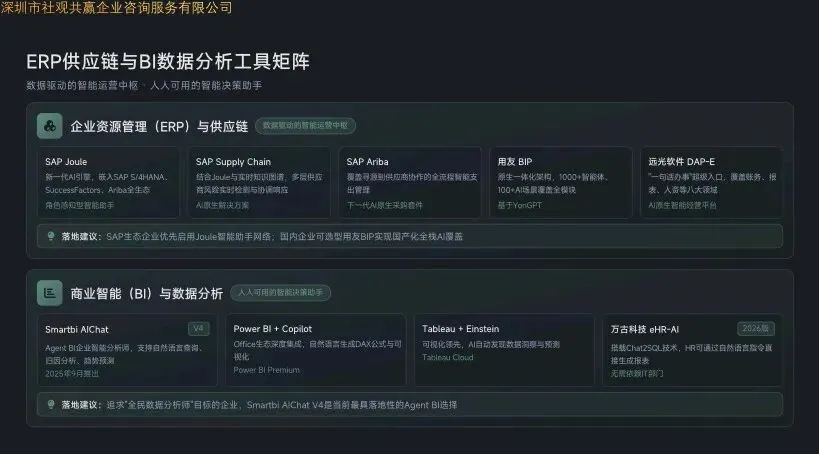 落地建议:SAP生态企业优先启用Joule智能助手网络;国内企业可选型用友BIP实现国产化全栈AI覆盖。