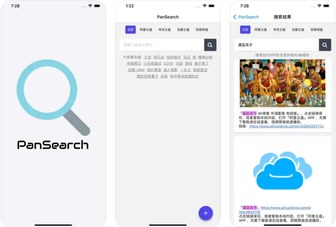 可以同时搜索阿里、夸克、迅雷、百度四家云盘资源,简单粗暴!