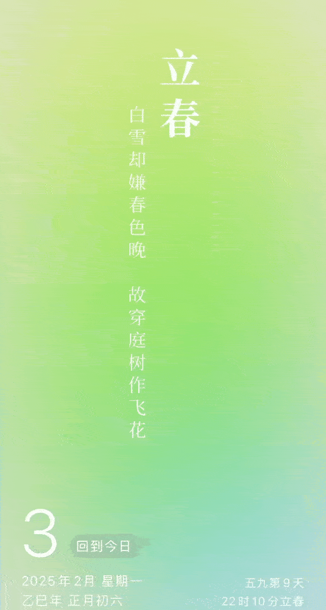 它支持丰富的诗词内容,支持流动的渐变背景和色彩,非常好看,动态的渐变色背景一直在改变;它支持唯美的桌面小组件,左滑屏幕,还可以看到下一个节气的倒计时。