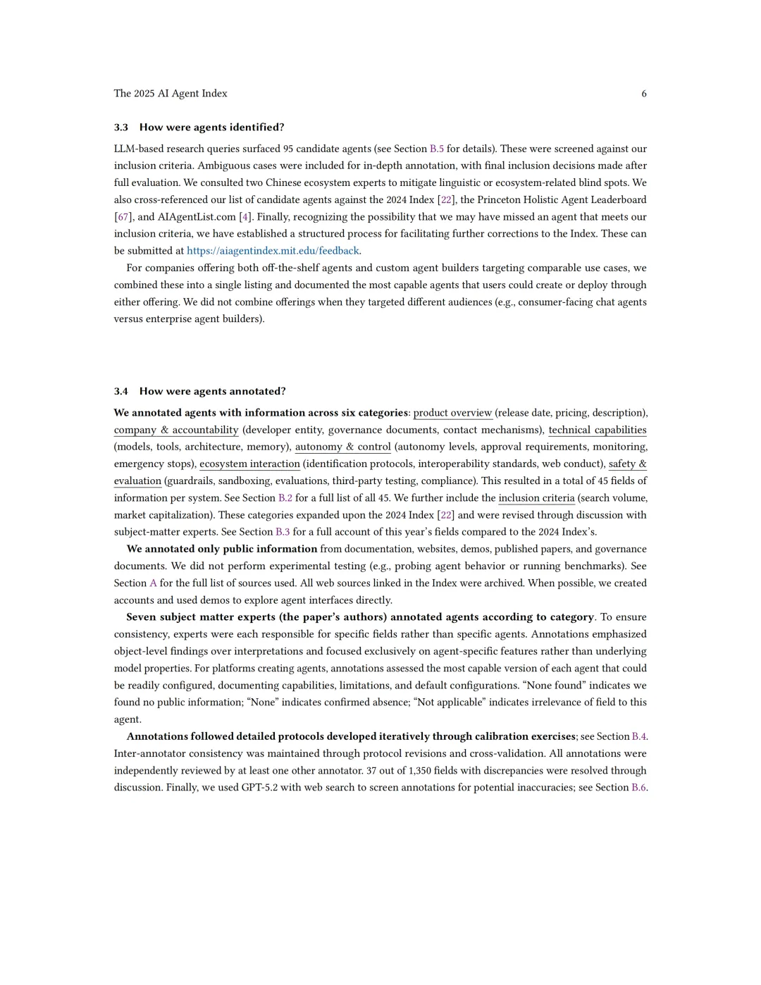 为此,报告构建了一个系统化的评估框架,对每个智能体在以下六大类别下的45个信息字段进行标注: