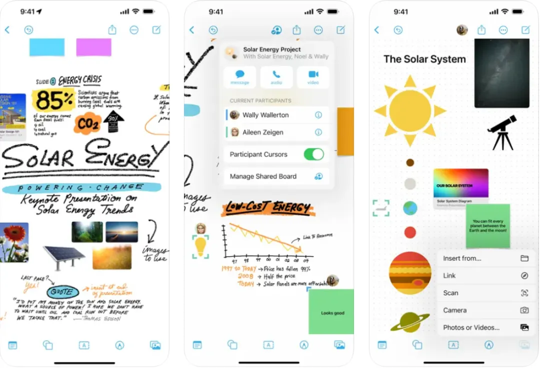 可以绘画、书写、粘贴贴纸、图片、多人协作之类的,可以是我们没事乱涂乱画的记事本同时也可以成为一个专业的生产力工具。