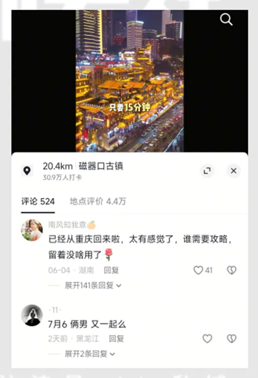 头像、昵称、简介、主页背景,都要像真人正常号,不能让人一眼看出是小号或者营销号。打开抖音,直接搜索你的行业关键词,筛选“最新发布”。评论区千万别直接发“找我买XX”,容易被博主删除,甚至封号。比如我搜“重庆旅游”看到一个视频,评论区有人说:“刚从重庆回来,太有感觉了,攻略留着没用,谁要?”底下141条回复——全是想要攻略、计划去重庆旅游的人。如果你是做旅游相关生意的,这些都是送上门的客户。按以上三步手动操作,每天稳定获得二三十个精准客户问题不大。3.抖音评论截流软件批量放大