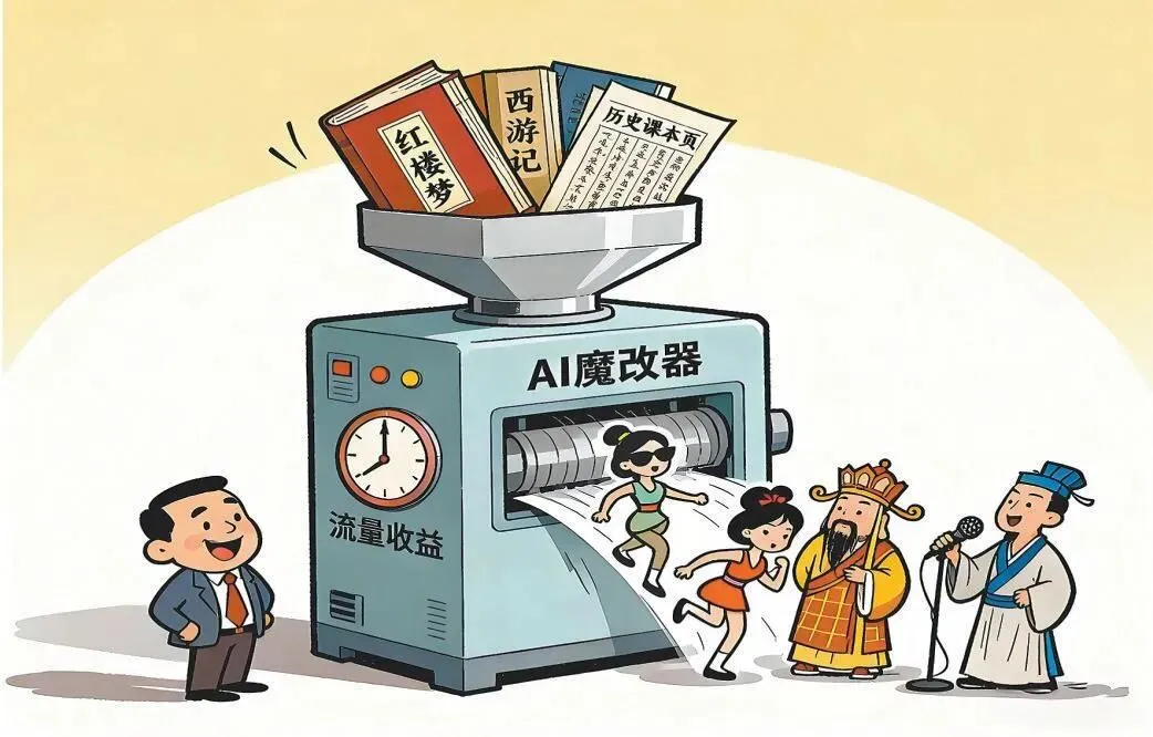 编者按:“AI魔改”指滥用AI工具对经典影视、动画等内容进行颠覆性篡改、魔性解构与低俗化改编,严重背离原作精神内核,冲击文化认知、助长侵权行为。