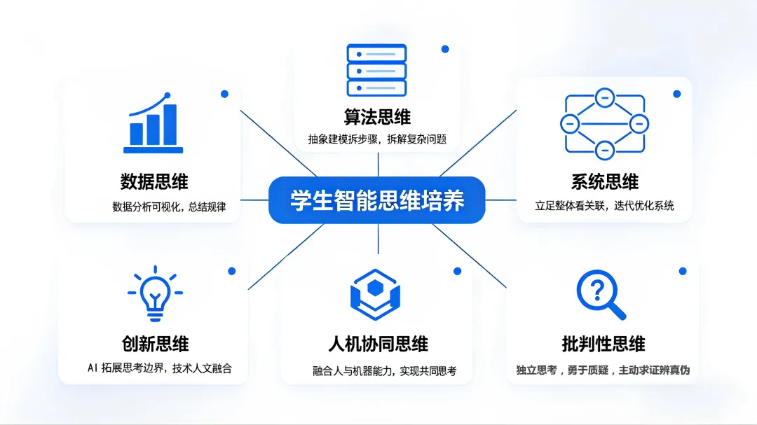 最近,教育部等五部门发布《“人工智能+教育”行动计划》,明确基础教育阶段重点培养学生智能思维,引导其科学使用技术,提升认知思考和解决复杂问题的能力——这正是学生适应智能时代的核心素养,在AI浪潮下,教育的核心任务已不再是“教技术应用”,而是“育核心思维”。