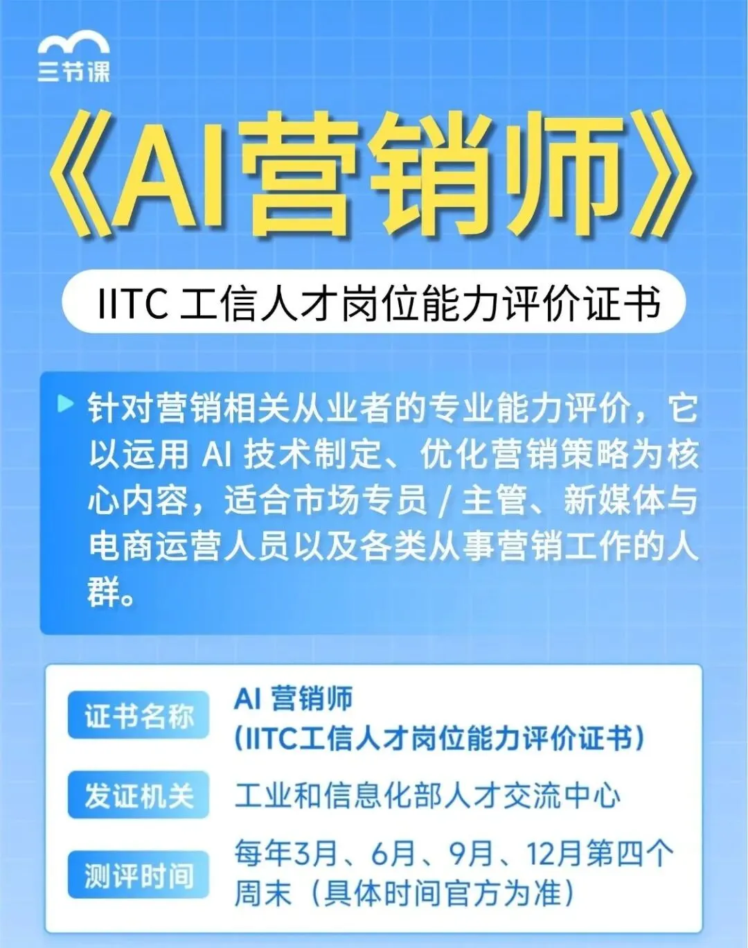 想转行 / 入行的新人:这张证是 “能落地 AI 营销项目” 的硬核凭证,比空泛的简历更有说服力。