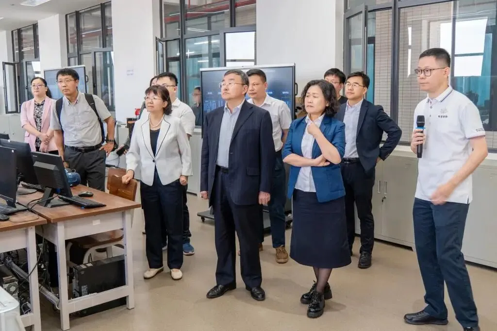 徐晓飞一行实地考察了机电学院实验实训与创新中心、电子与信息学院智能家电实训中心、自动化学院智能制造数字孪生实验室。
