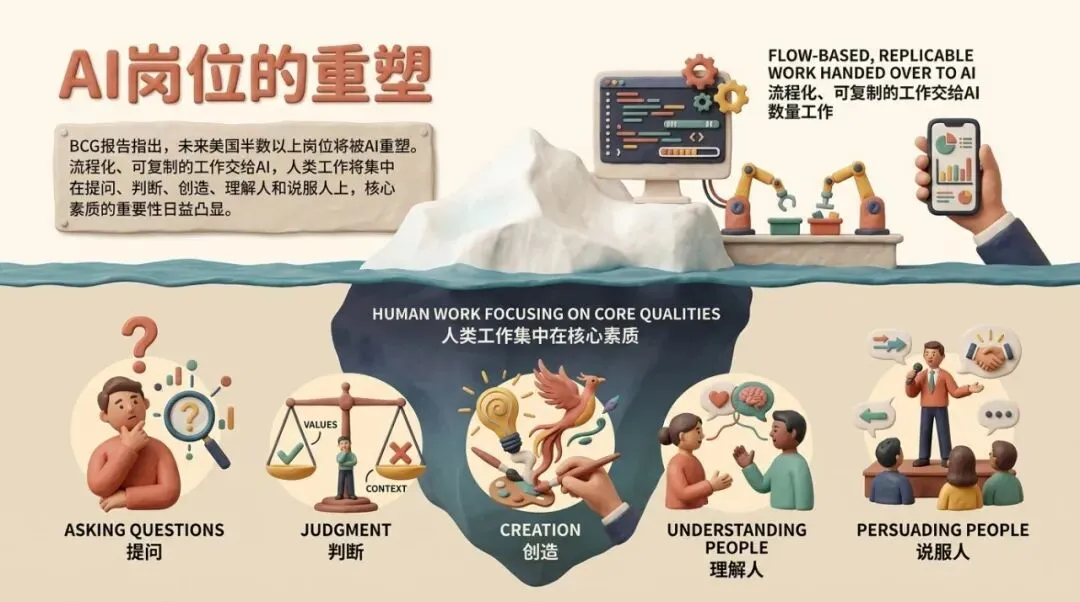 卖“怎么用 AI”,价值会被模型升级不断压缩;卖“用 AI 做什么、怎么判断该不该做”,价值反而会随着 AI 变强而变大。前者是工具技巧,后者是判断力。