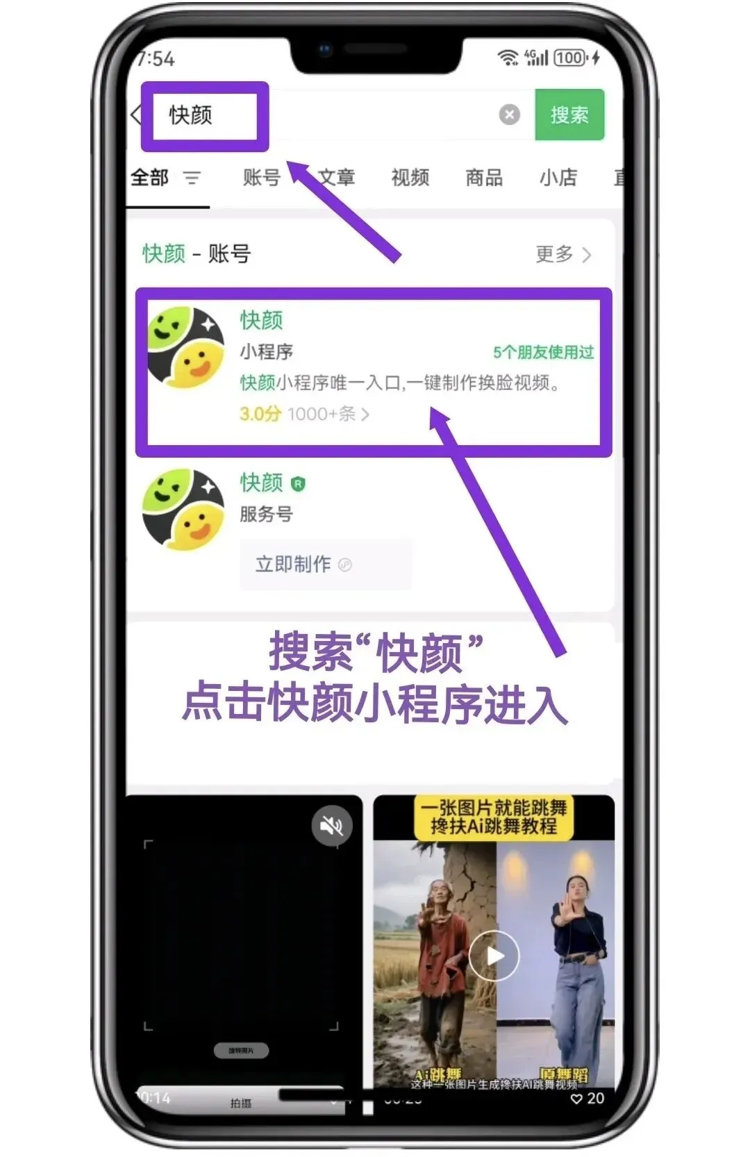 最近超火的搀扶跳舞视频,是不是特别火,还有很多小伙伴找不到在哪里制作,接下来我来教你,圆你一个跳舞梦!打开微信发现页面找到搜一搜,搜索🔎“快颜”小程序,输入口令“520180”即可制作