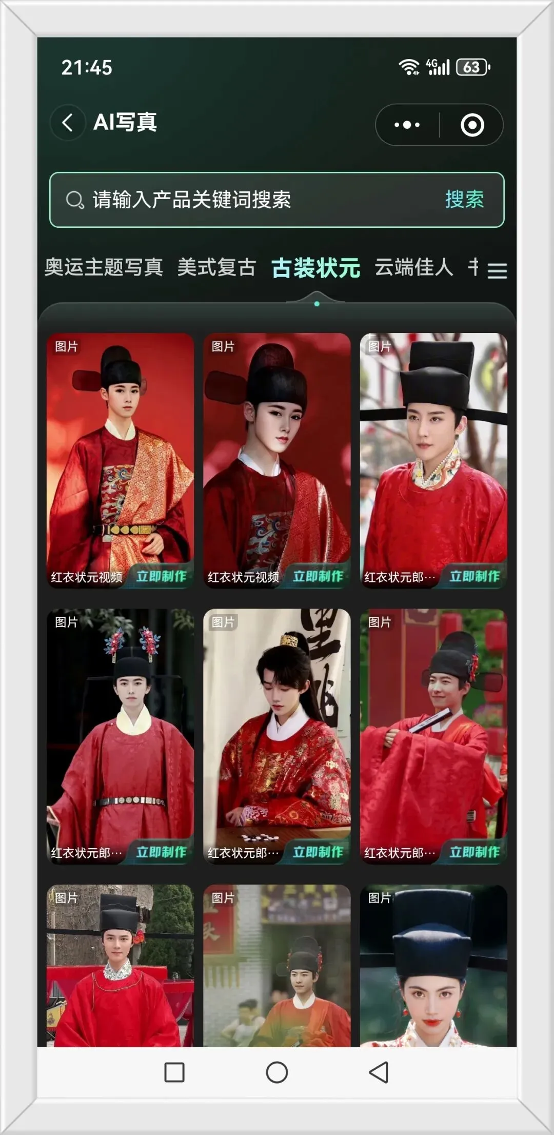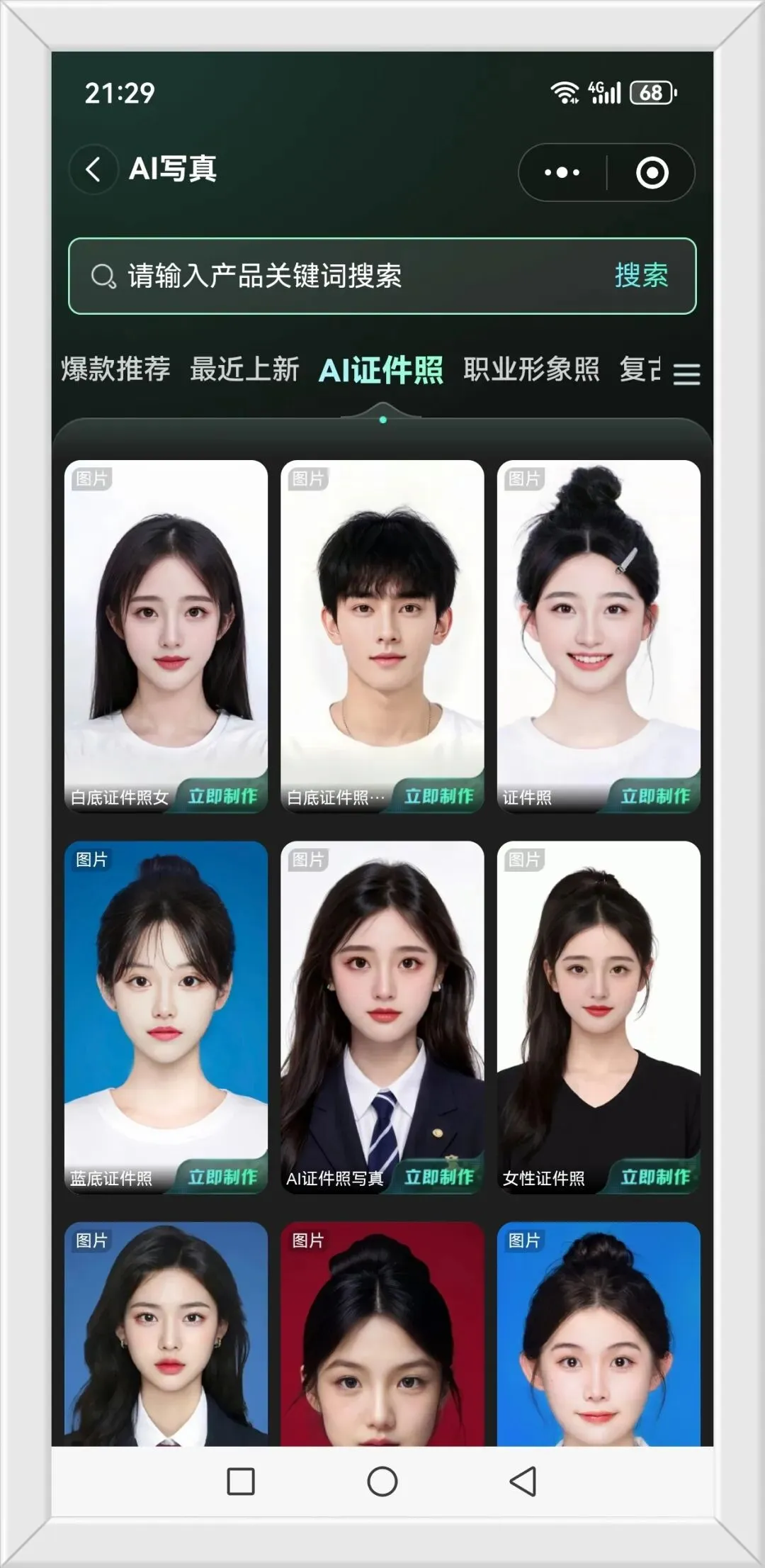 里面还有很多不一样的Al写真证件照,跳舞,唱歌,搞怪视频可制作,都是可以免费体验的,快点去试试吧