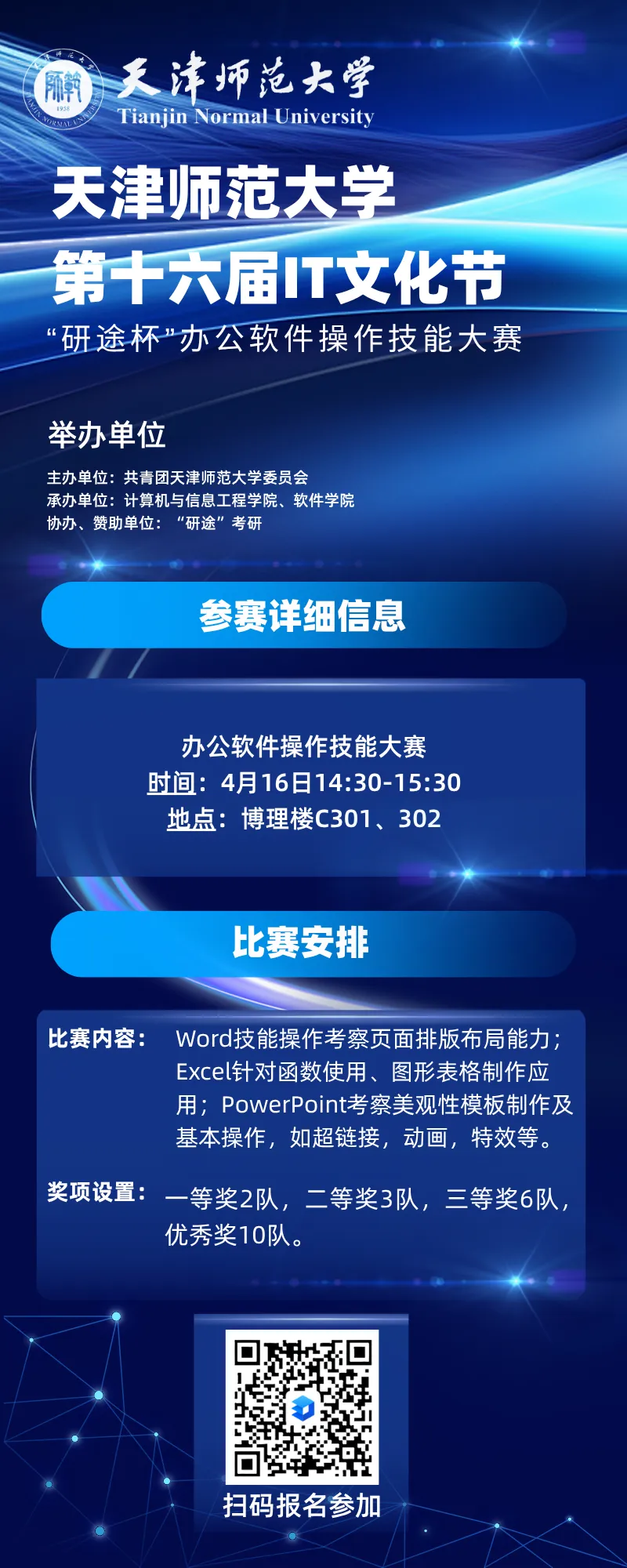 本届IT文化节所有活动均通过第二课堂成绩单系统统一报名,具体报名流程、操作指引将通过官方渠道后续发布,请广大同学密切关注。