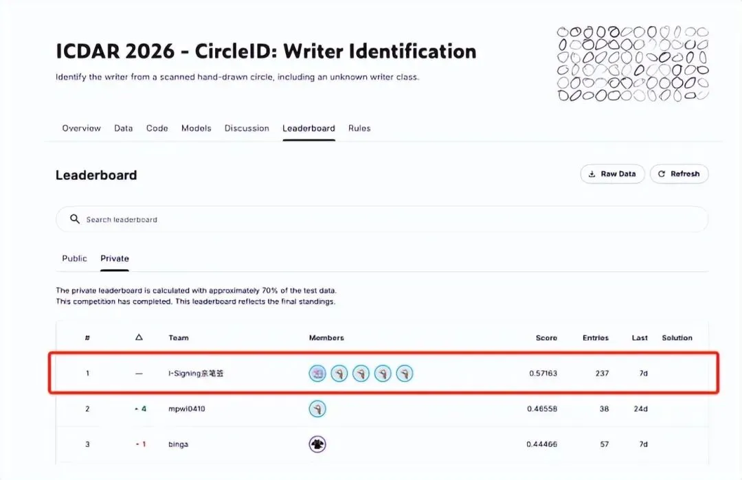 这事说起来挺有意思,我先把话放这儿——别小看这条新闻。中国一个科研团队,在ICDAR 2026的国际比赛里拿了第一,还是那种“压着第二名10.6个百分点”的第一。听起来像个普通AI竞赛,对吧?但你要真这么理解,就有点太“看热闹”了。这次比赛干的活其实挺变态的:给你一堆手绘圆圈,一共5905个,然后让你判断是谁画的。就这么简单。
