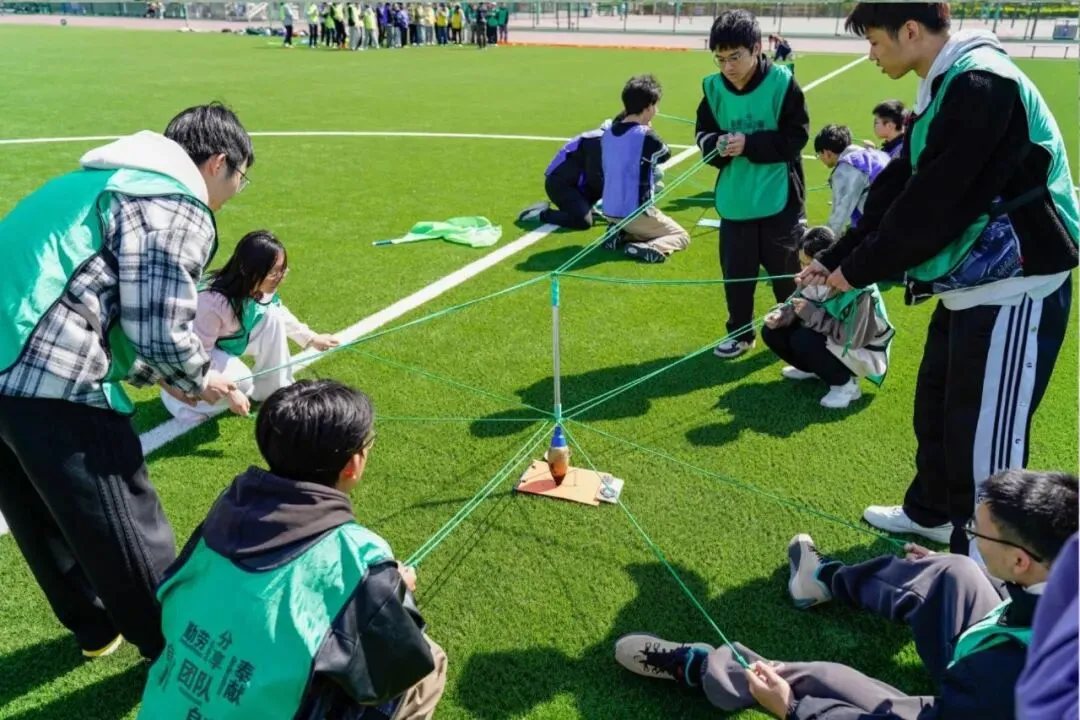 团队能量项目将整场活动推向高潮,工作人员将动力绳两端连接,全体同学伸直手臂、紧握绳索,齐心协力拉成一个整齐的圆圈,随后缓缓坐下,稳稳维持住动力绳圈。随后,在保护员的全程守护下,几位学子站上绳圈,在大家的共同支撑下直立匀速行走,每一步都承载着团队的信任与力量,每一次稳稳的支撑都彰显着团队的凝聚力。
