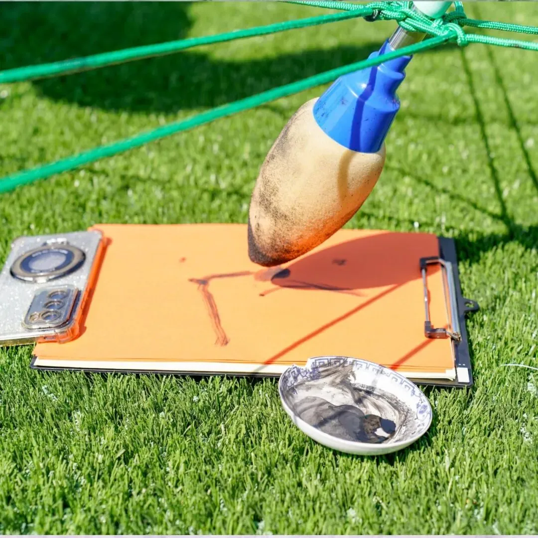 “神笔马良”项目中,成员手拉绳索操控巨型毛笔书写汉字。看似简单的任务实则暗藏玄机,同学们在反复调试中磨合沟通节奏,从步调紊乱到行云流水,在协作中见证蜕变。