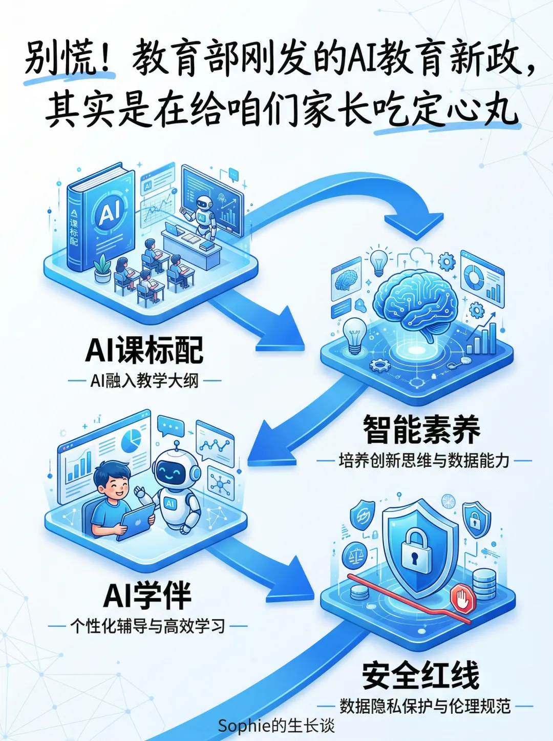 就在前两天(4月10日),教育部等五个部门联合发布了一份重磅文件——《“人工智能+教育”行动计划》。消息一出,各种焦虑和疑问满天飞:“是不是以后孩子不会用AI就落后了?”“我们这种普通家庭,根本玩不转高科技啊!”