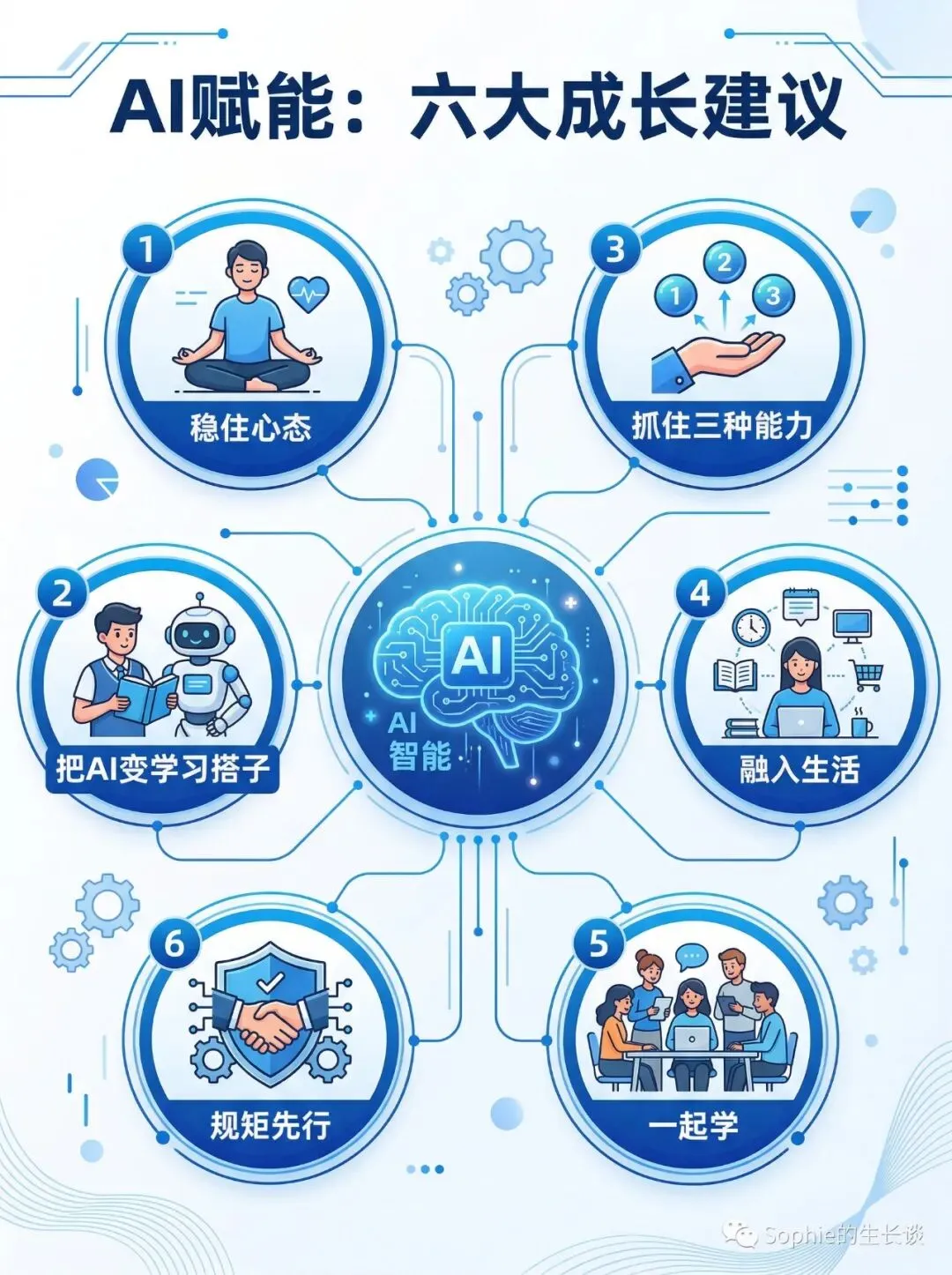 以前,AI可能是大城市名校的“奢侈品”,或者只是兴趣班里的选修课。现在,国家要把它变成每个孩子的“必需品”。从幼儿园到大学,甚至到成人终身学习,都会有系统的AI课程。而且,国家还会特别照顾农村和偏远地区的孩子,通过线上平台确保教育公平。简单说,未来你的孩子在学校里学AI,就跟学语文数学一样平常。2. 学AI,不是为了当“工具人”
