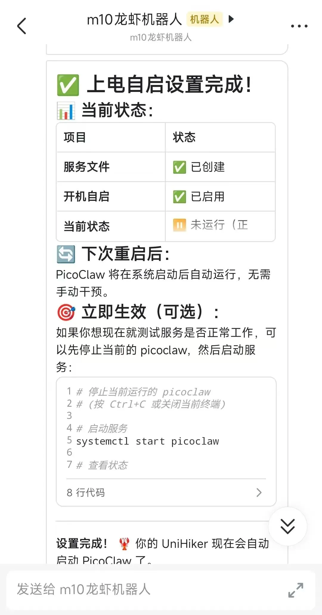 步骤 3:行空板M10上电自动启动picoclaw设置