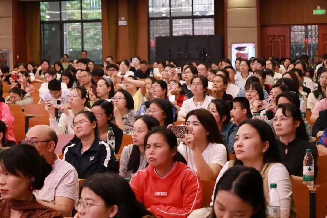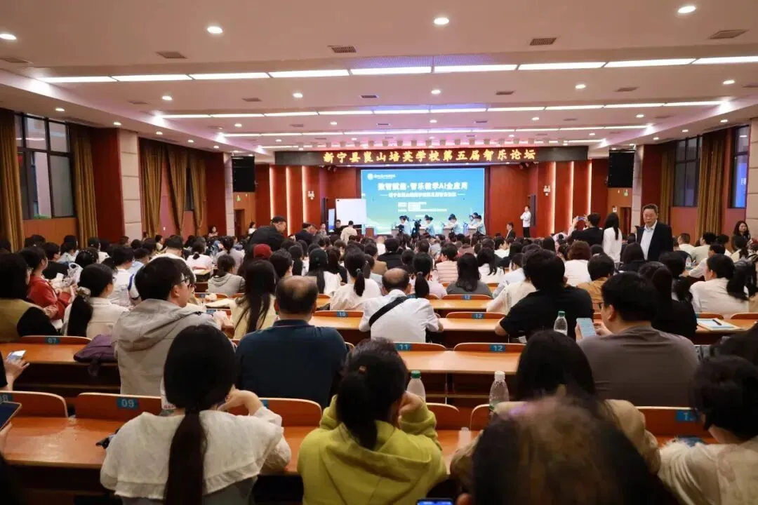 4月11日,春风化雨,智慧涌动。新宁县崀山培英学校静远楼培英大讲坛内,第五届“智乐论坛”如期启幕。北京大学教授陈江、邵阳市教育科学研究院副院长李斌、长沙市东雅中学教学副校长谭宏志、科大讯飞高级教研员肖莉等教育专家与来自长沙市、邵阳县、新宁县的近800名中小学教师齐聚一堂,参会人数创历届智乐论坛之最,共赴一场“数智赋能,智乐教学AI全应用”的思想盛宴。