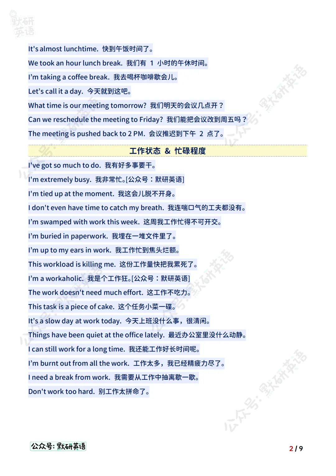 不管是外企打工人、跨境办公党,还是想提升职场英文的小伙伴,背会这些,轻松拿捏职场英文沟通,效率翻倍、气场拉满!从此工作交流不怯场,地道表达信手拈来~