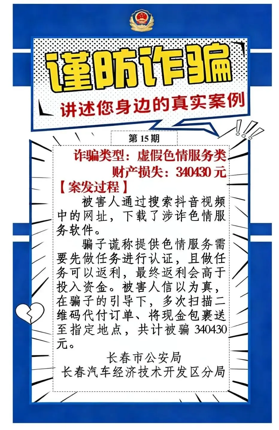 事发长春,受害人下载涉诈色情服务软件 被骗34万元现金
