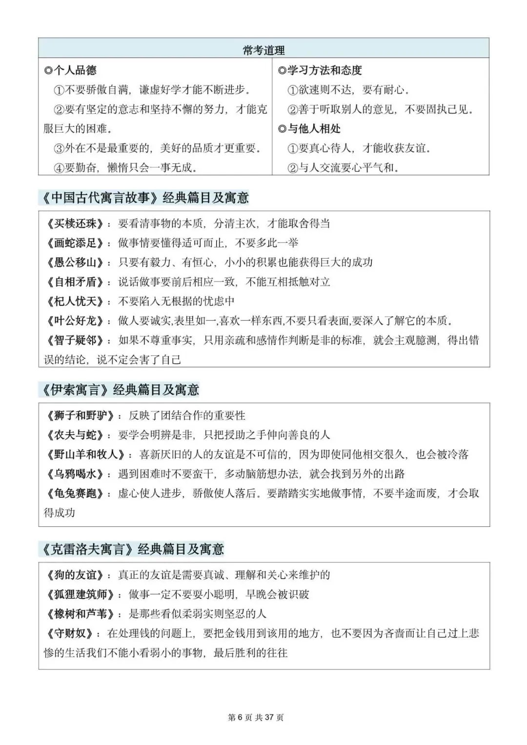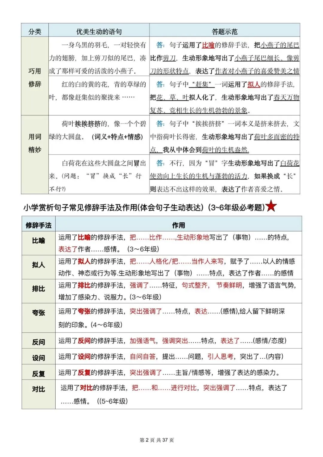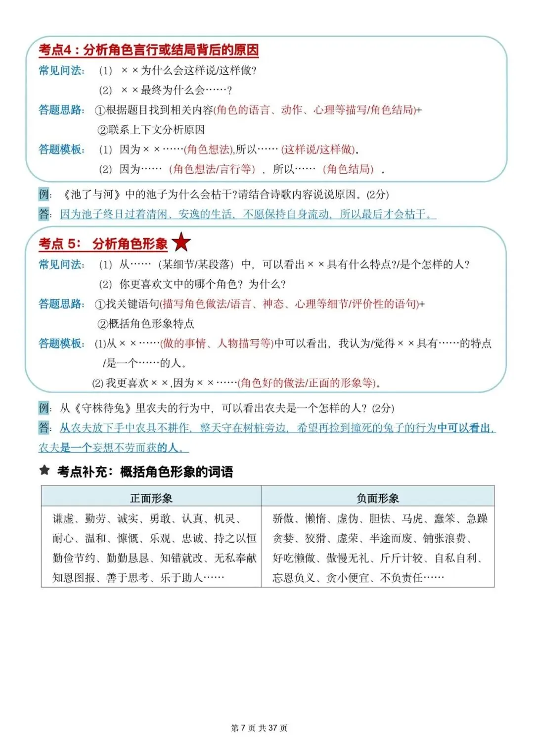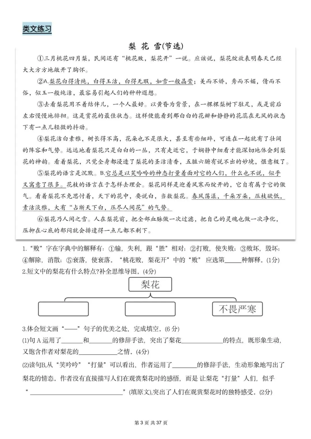26春新三年级下册语文阅读理解与答题模板(37页)